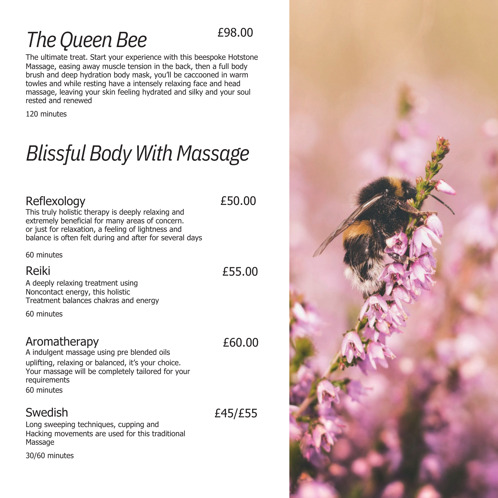 Holistic therapies for women, Choose from a range of delightful treatments, designed to help you Switch off, Drift off & Feel the Calm